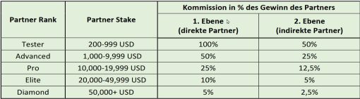– ab 200 $ Guthaben – 20% vom Tagesgewinn-Prozentsatz = ca. 3,2 % monatlich
