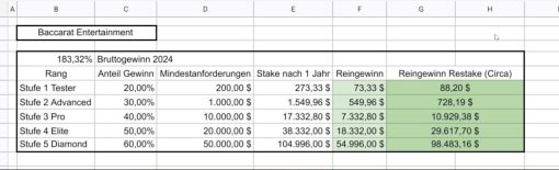 ist man täglich am erzielten Baccarat-Gewinn beteiligt.